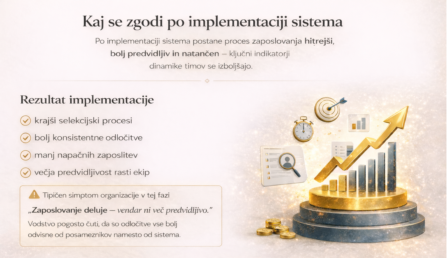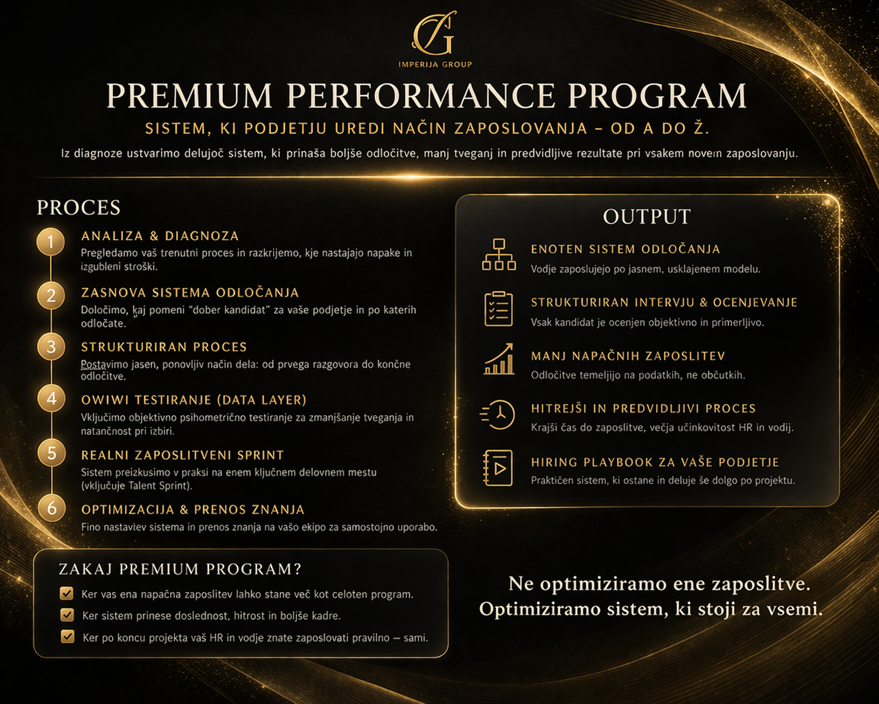 Premium Performance Program vzpostavi sistem odločanja, ki poveže vse ključne korake zaposlovanja v enoten in predvidljiv okvir.
